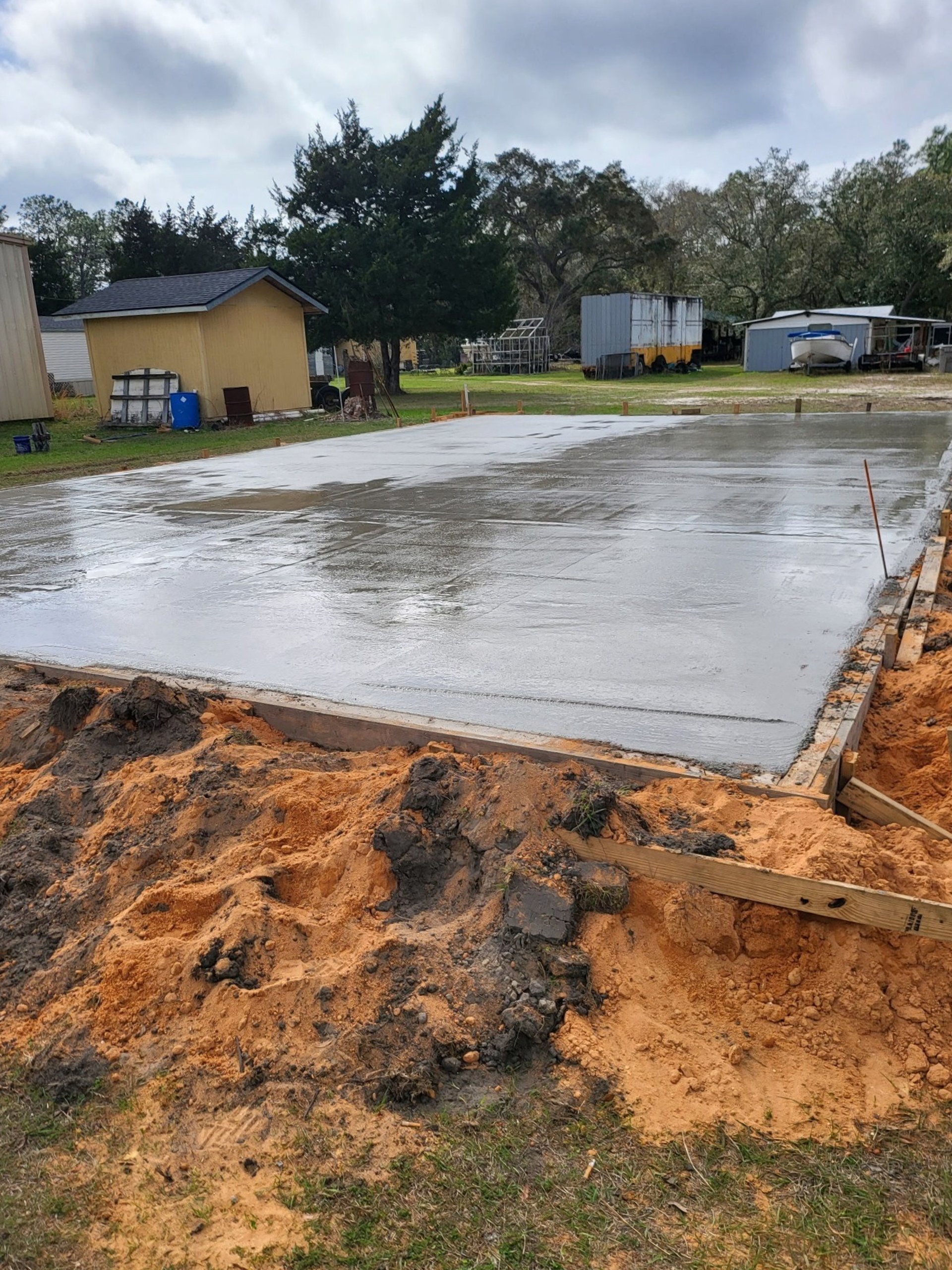 Durable concrete slab installation in Pensacola, FL for garages, sheds, and foundations. Built strong, level, and designed to last.
